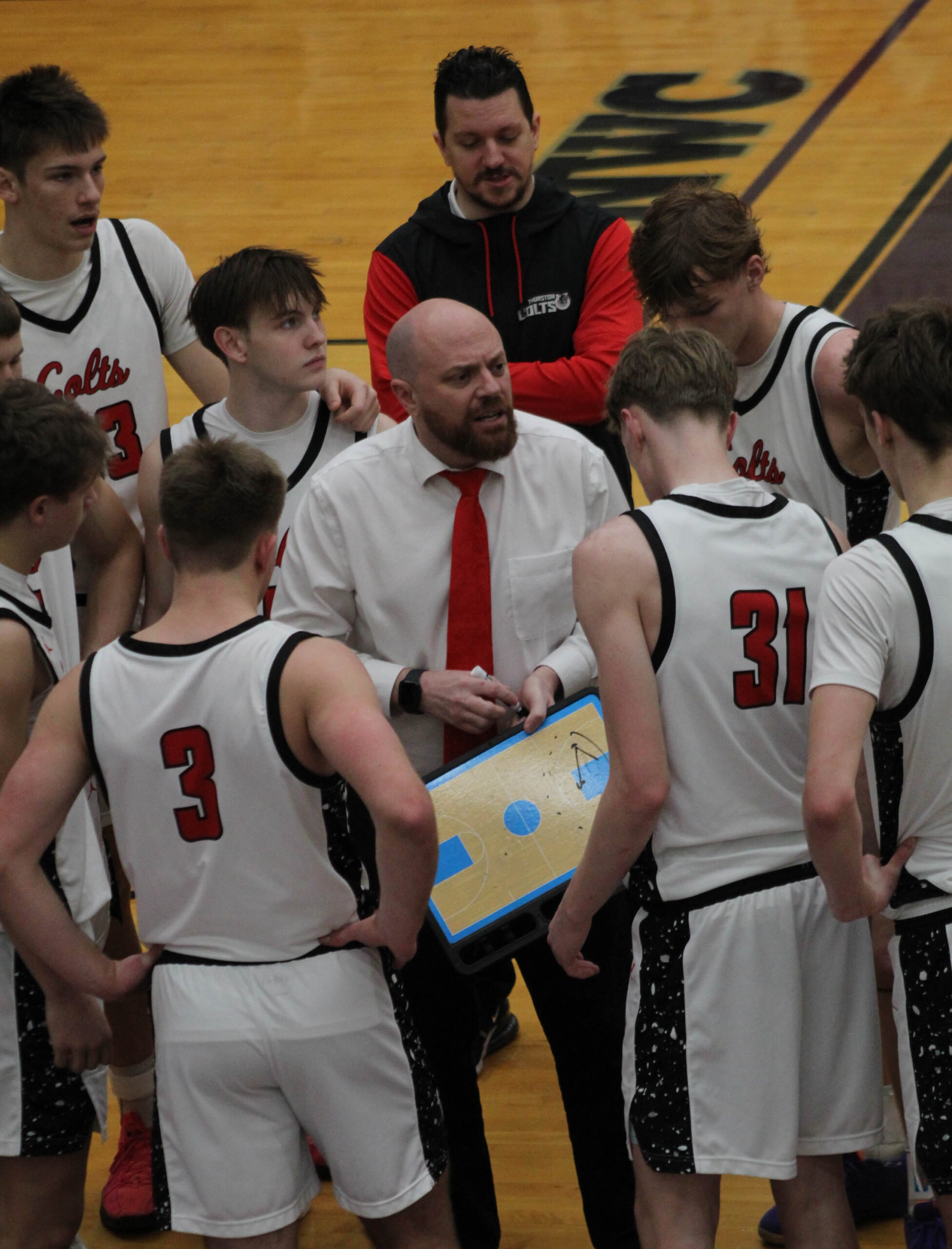 ■ THURSTON defeated Churchill 49-24 on Tuesday to clinch their third league title in a row. Churchill’s previous season low in points was 39, in their first matchup against the Colts. This game set a new low by 15 points. Lucas LaBounty led the Colts with 23 points and 13 rebounds. In their final regular-season…