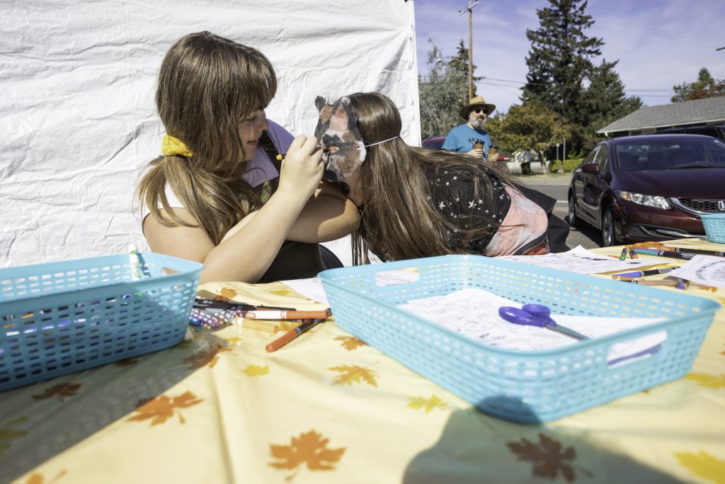 And it had something for everyone. There was a homemade scarecrow contest, a pumpkin chucking event, a pet dress-up contest, a coloring contest, face-painting, free soup, and much more. The colorful shirt designs were all done by Moore’s friend, Weronika Kolinska of Amsterdam.